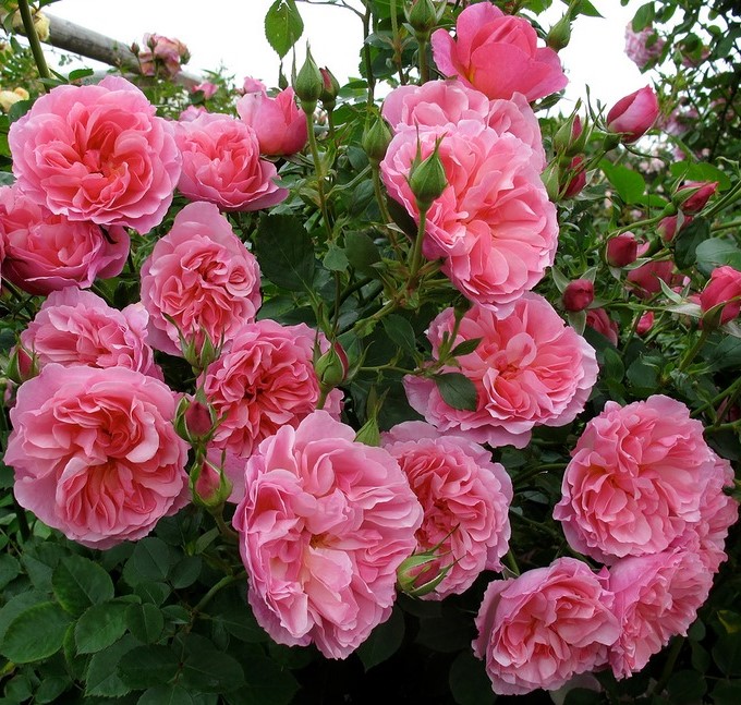 Boscobel (David Austin, 2012) Описание сорта: Роза Боскобель (Boscousin) — это, прежде всего, изумительные сильно махровые цветы правильной круглой формы. Цвет можно охарактеризовать как коралловый с красным подтоном. Лепестки одинаковой формы, их количество в одном бутоне может достигать 78 шт. При полном раскрытии бутона можно увидеть желтую серединку. Как и многие кустовые розы, Боскобель образует эффектные грозди из 3-5 соцветий. Высота куста довольно внушительная и может достигать 1,2-1,4 м. Сильные гибкие стебли формируют раскидистый вертикальный куст, ширина которого обычно не превышает 1 м. Небольшие шипы равномерно распределяются по всем стеблям и веткам. Имеет невероятно приятный запах с фруктовыми нотками. * У сорта очень долгий период цветения. Куст покрыт бутонами с весны до заморозков. Почему именно Английские розы: Английские розы — группа сортов роз созданных в последней четверти ХХ века английским селекционером Дэвидом Остином. Большая часть сортов относится к классу Шрабы. Английские розы отличаются от остальных современных сортов формой цветка и строением куста. Они сочетают в себе преимущества старинных сортов роз (чашевидную форму цветков, гармоничную форму куста, разнообразие ароматов цветков) с устойчивостью к болезням, разнообразием оттенков и хорошо выраженным повторным или непрерывным цветением присущим современным сортам чайно-гибридных роз и роз класса флорибунда. В группе присутствуют сорта с различным типом роста куста. Они могут быть низкие, средние, высокие, плетистые, распростёртые, густые, разреженные. При этом в разных климатических зонах одни и те же сорта могут демонстрировать различные особенности. Многие сорта отличаются теневыносливостью, что обусловлено английским климатом отличающимся малым количеством солнечных дней и использованием теневыносливых сортов в программе разведения.